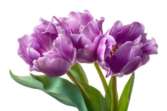 Purple tulip flowers isolated on transparent background. Springtime tulip flower for holiday decoration design.