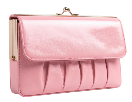 Angled Side View of Pink Clutch Bag with Elegant Pleats, Isolated PNG