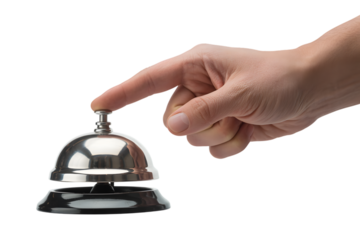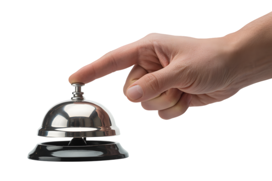 hand ringing service bell, close-up shot . Isolated on transparent background, png