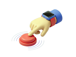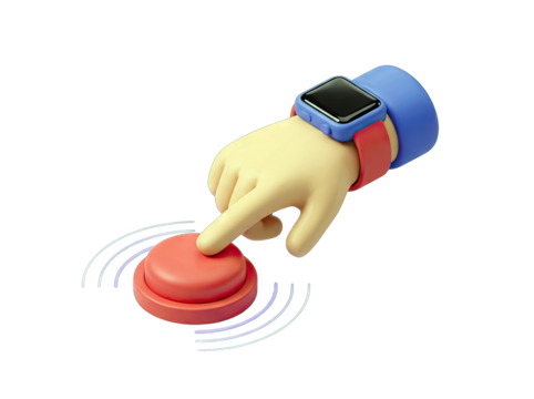 Cartoon Hand Pushing Button with Smartwatch - Activation Concept