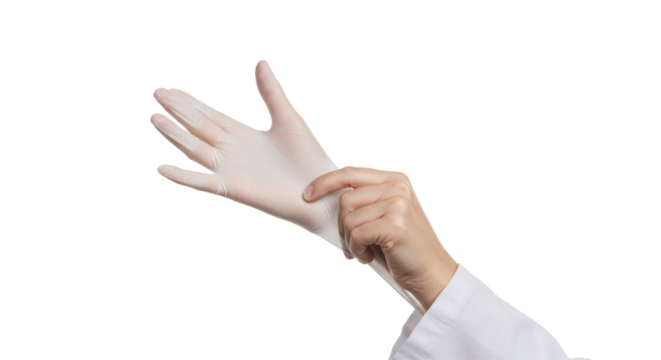 Isolated Hand Putting on Latex Glove