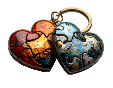 Two Interlocking Heart Shaped Puzzle Pieces.