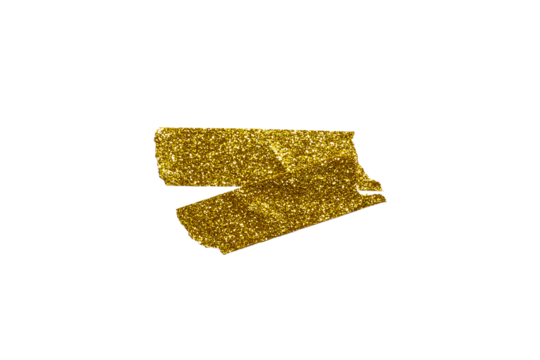 Isolated Gold wrinkled adhesive tape pieces. Strips of washi tape on transparent background. PNG for design collage overlay. Torn plastic tape.