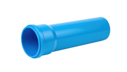 A blue cylindrical plastic pipe with a socket end, commonly used for plumbing or drainage systems.