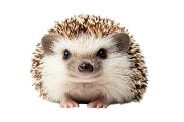 Cute little African pygmy hedgehog sitting on soft bedding a perfect pet for families and children alike isolated on transparent background