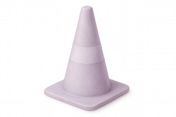 Purple traffic cone with white stripes standing on a transparent background, perfect for safety and construction projects