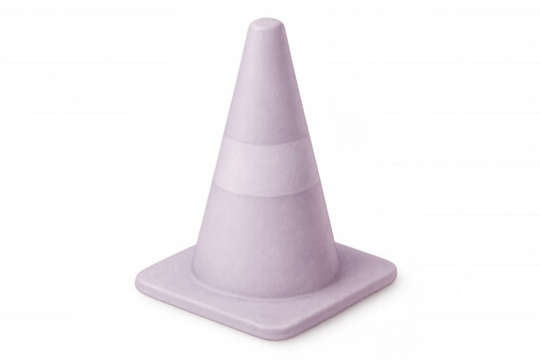 Realistic white traffic cone standing on a transparent background, ideal for safety and construction projects