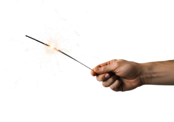 Hand Holding a Lit Sparkler isolated on transparent baackground