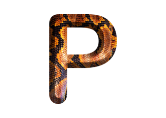P, letter shape with snake skin motif design, python skin.