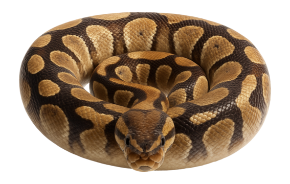 Coiled ball python captured in studio setting high-resolution wildlife photography serene environment close-up perspective