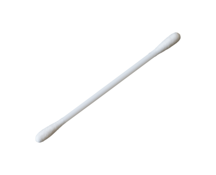 Cotton swabs for hygiene purposes on an isolated background. The swabs have a white plastic base and soft cotton tips on both ends.