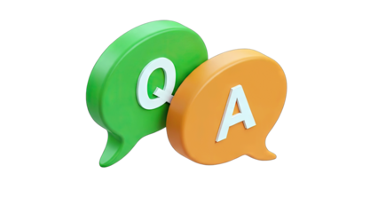 Blue and purple speech bubbles with "Q" and "A" signifying a question and answer session.