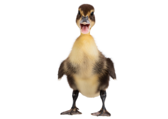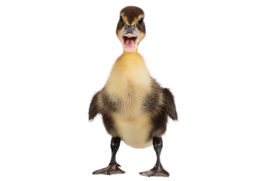 Duckling (7 days old) quacking isolated on a transparent or white background