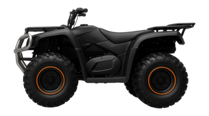 Sleek black all-terrain vehicle parked on a bright background highlighting its design features