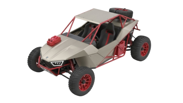 Tan and red off-road buggy isolated PNG, a four-wheeled vehicle for extreme terrain and recreational driving on transparent background