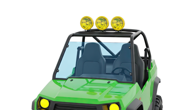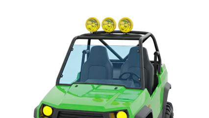 Green Off-Road Buggy with Spotlights and Blue Windshield