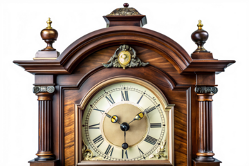 Wooden clock with elegant craftsmanship, highlighting its timeless beauty and intricate woodwork PNG cut out.