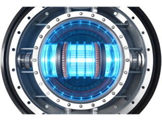 A modern server data center with glowing atom, representing advanced technology, data storage, and network infrastructure isolated on transparent background