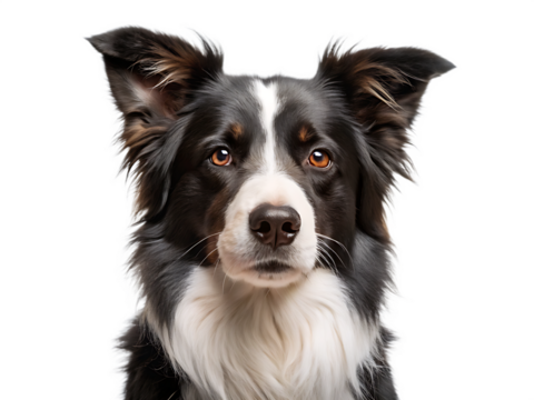 Border Collie Dog Face Close-up with Serious Expression canine animal isolated on a transparent background