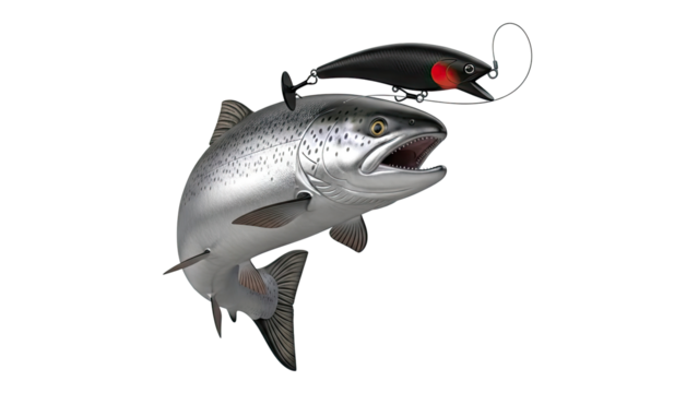 Salmon lunging at fishing lure