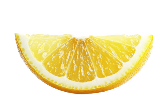 Juicy lemon slice vibrant yellow citrus wedge isolated on black background perfect for refreshing summer on transparent background