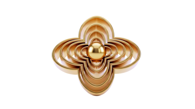 Three elegant gold quatrefoil shapes isolated on transparent background, decorative