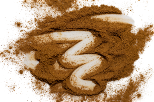 Elemento alimentario en formato PNG que muestra cacao en polvo espolvoreado o canela en polvo en un diseño estilizado. Perfecto para tarjetas de recetas, banners o contenido editorial.