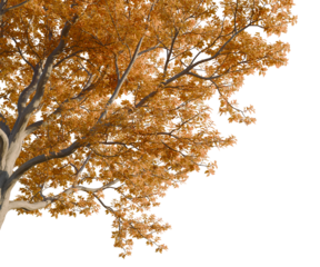 English Oak Tree PNG Transparent 3D Render – Quercus robur, Large Autumn Tree with Orange-Brown Foliage for Fall Scenes or Forest Design