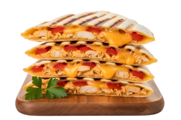 Quesadilla vector with cheese and vegetable for logo or emblem. Traditional mexican fast food. Quesadillas Mexico food with tortilla and meat for poster or print.
