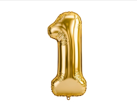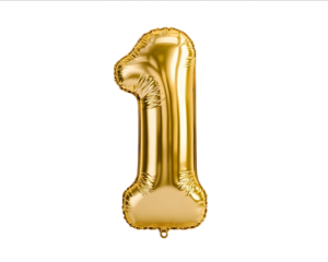 A golden number 1 balloon isolated on a white background in the front view