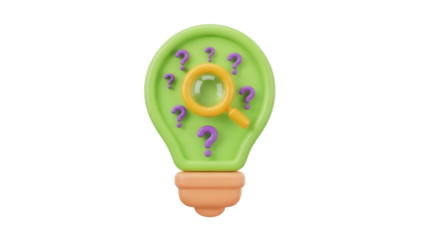 Isolated Light Bulb with Magnifying Glass and Question Marks, Solution Concept