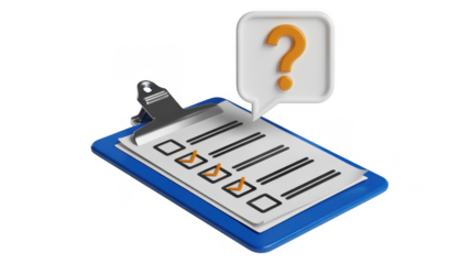 Clipboard with checklist and question mark survey form isolated on a transparent background