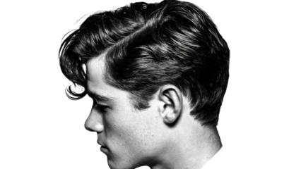 Stylish men's hairstyle featuring voluminous quiff isolated on transparent background