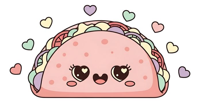 Cute cartoon taco with hearts