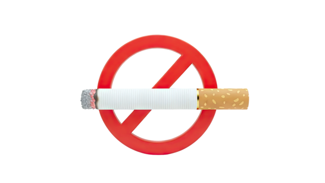 Stop smoking sign with crossed out cigarette, anti smoking campaign, health warning, quit smoking awareness symbol Isolated on transparent background