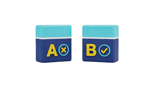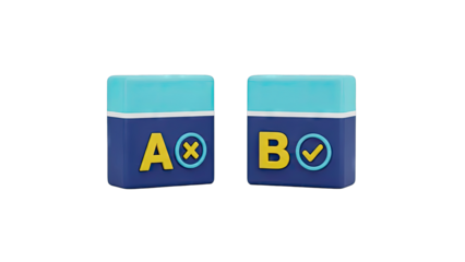 Two Rectangular Blocks with Letters A and B, Checkmark and Cross