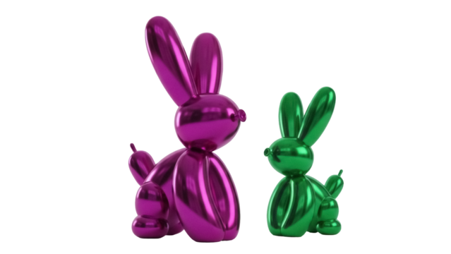 Set of A sweet, soft rabbit ballerina in a pink tutu and pink pointe shoes stands gently holding color balloons in one paw isolated on a transparent background