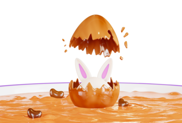 Cheerful easter rabbit painting eggs illustration on transparent background