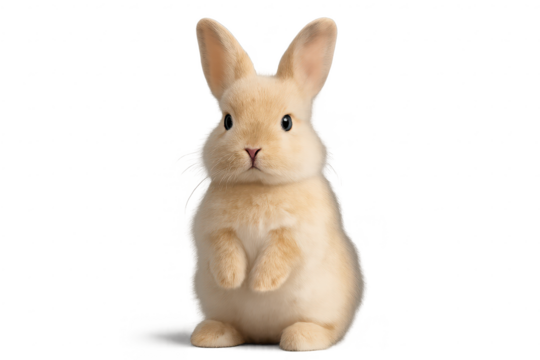 Isolated baby rabbit sitting, facing forward, posing cutely for the camera, looking adorable