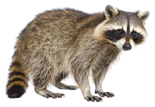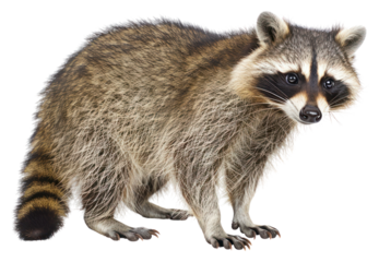 Cute raccoon standing with front paws together, isolated on transparent background. Perfect for wildlife, nature, and animal-themed projects.