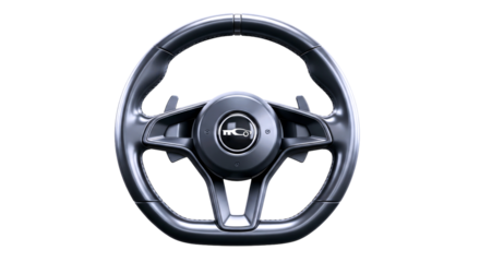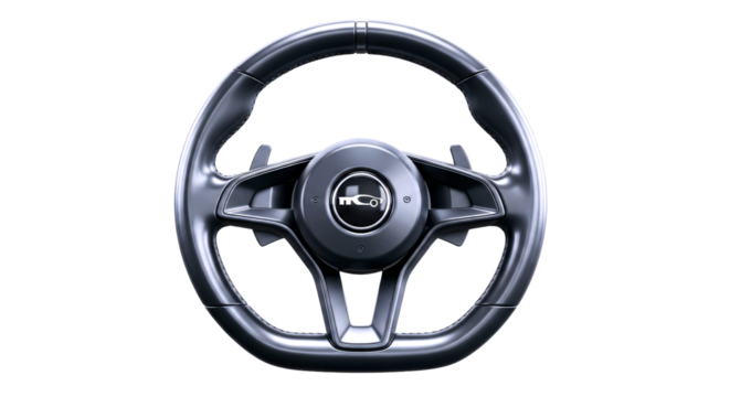 sleek graphite steering wheel 3d model highdetail race car interior asset for game design and automotive visualization, isolated on transparent background