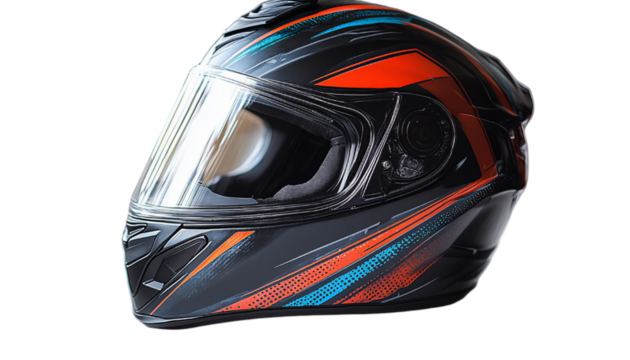 Striking race helmet designed for high-speed motorsport adventures at the racetrack isolated on transparent background