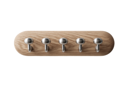 Wooden coat rack with five hooks, wall mounted hanger, entryway organizer, home decor, furniture isolated on transparent background