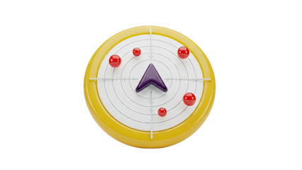3D Navigation Compass with Red Spheres and Purple Arrow