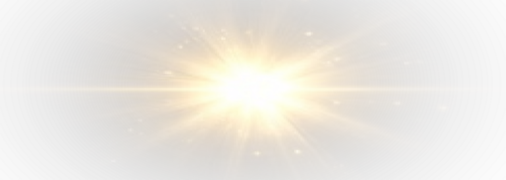 Bright star light glow effect, radiant flare rays with glitter and shimmer, abstract cosmic sparkle element on transparent background.