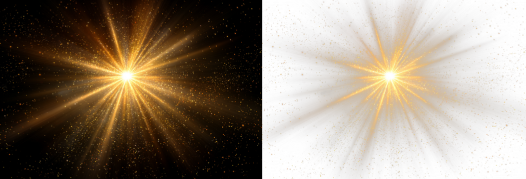 Explosion of sunlight and magic rays PNG, perfect for radiant overlays, glowing starburst effects, sparkling light compositions, and festive digital artwork
