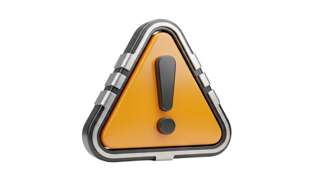 3D Yellow warning triangle with lightning bolt symbol on transparent background