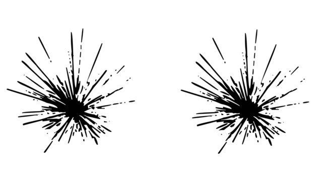 Dynamic black explosion burst on white background