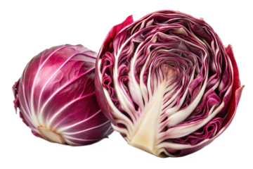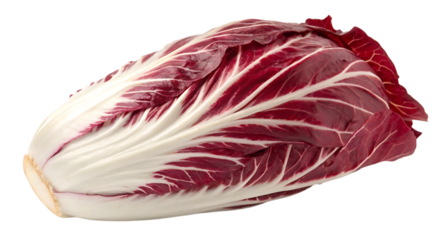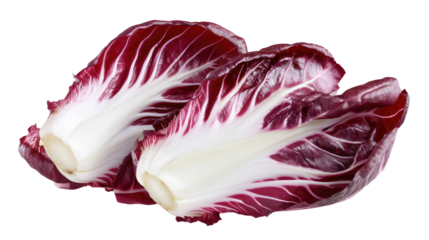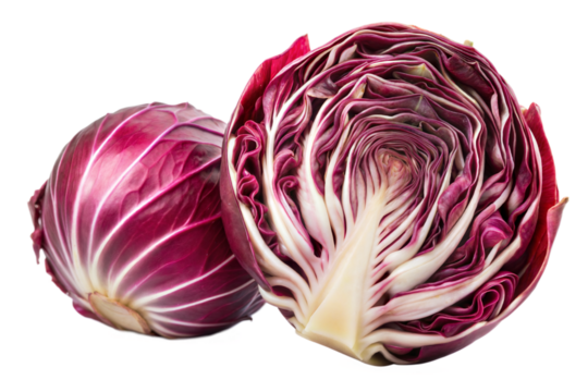 Vibrant radicchio showcasing rich colors and unique textures in a minimalistic display isolated on transparent background