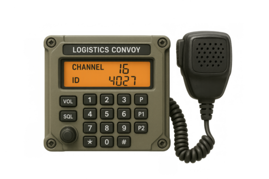 Radio receiver on a white background. Black portable wireless radio close-up isolated on a white background.